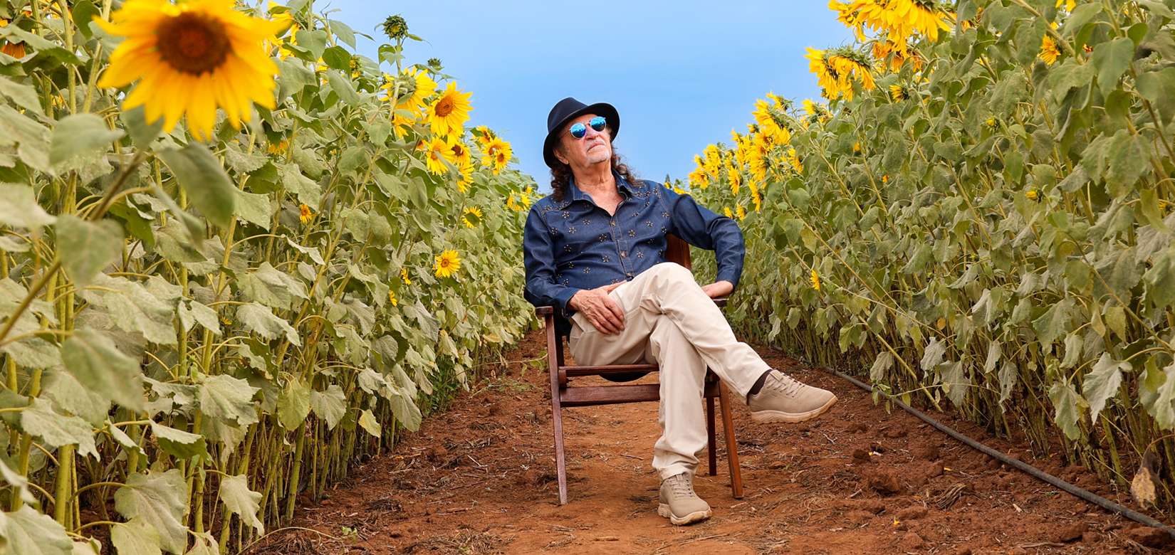 ALCEU VALENÇA stars in 80 SUNFLOWERS accompanied by Tovinho (keyboards and musical direction), Cássio Cunha (drums), Zi Ferreira (guitar), Nando Barreto (bass), André Julião (accordion), Costinha (flutes). Special Guests: Lui Coimbra (cello) and Natalia Mitre (percussion).
